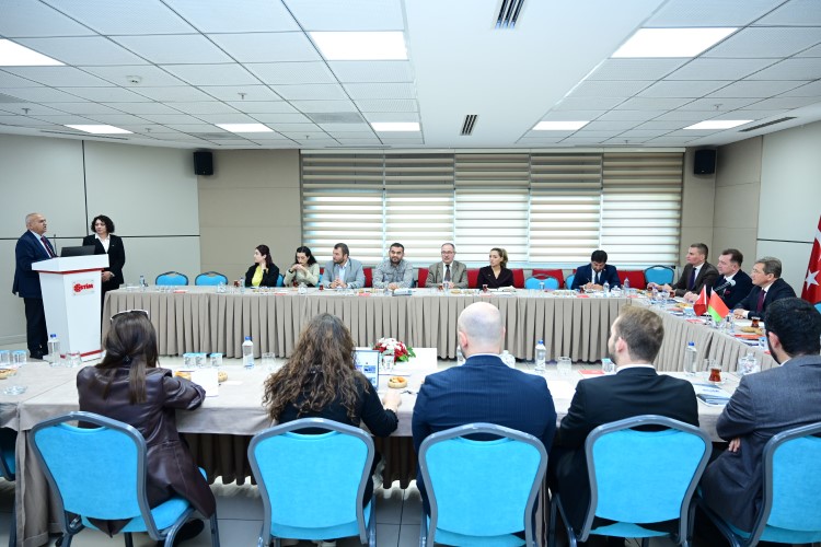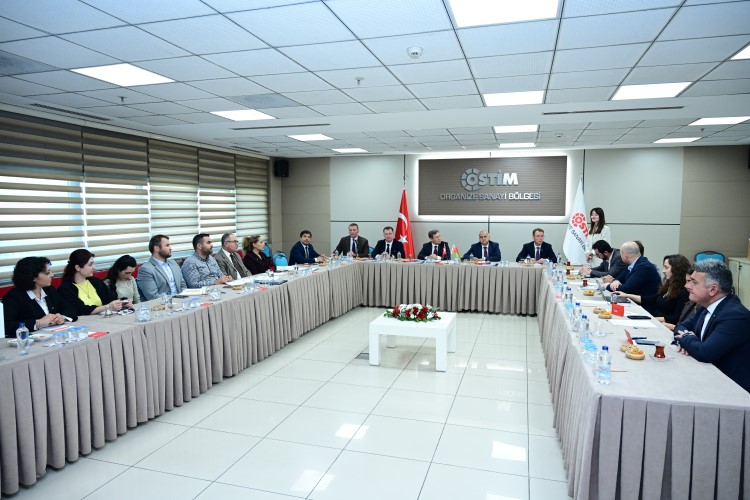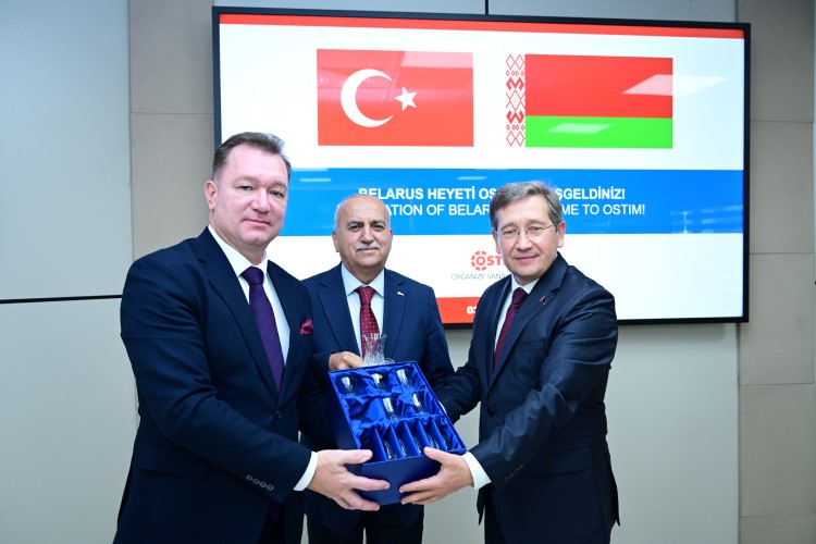 OSTİM OSB Yönetim Kurulu Başkanı Orhan Aydın ve kümelenme yöneticileriyle bir araya gelen Belarus Heyeti, Türkiye ve Belarus arasındaki ticaret hacmi ve yatırımların artırılması konusunda iş birliği imkanları hakkında görüş alışverişinde bulundu.